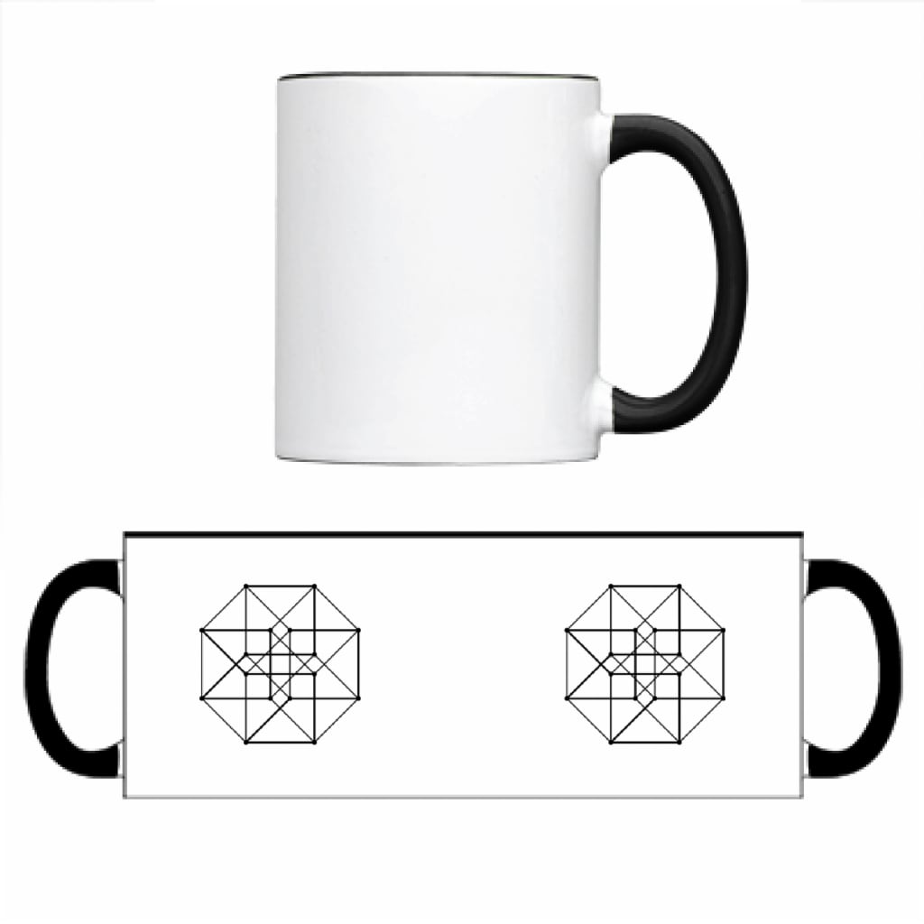 マグカップ コップ コーヒー カップ マグ 2トーン 湯のみ 取っ手 耐熱 ストリート 幾何学 螺旋 模様 メタトロンキューブ マカバ スピリチュアル 黒 白 Black White